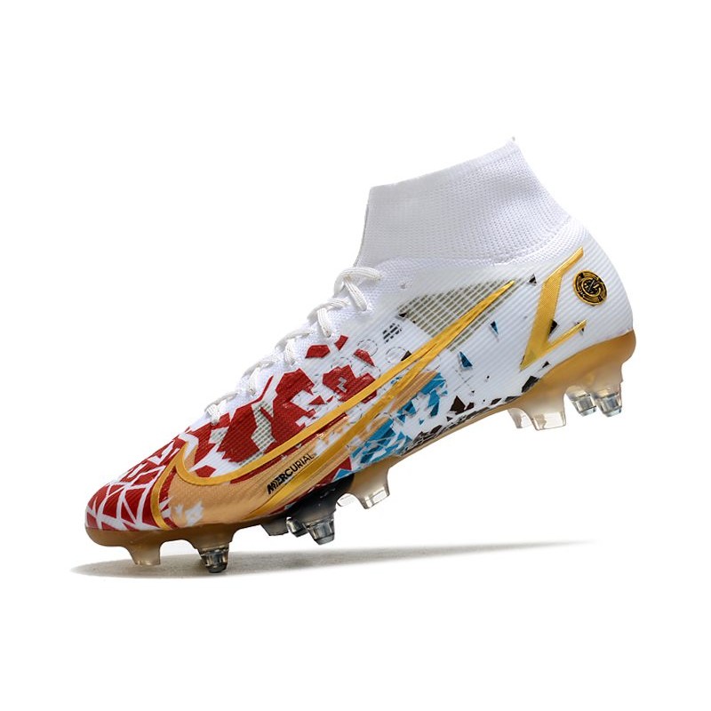 Nike Mercurial Superfly 8 Elite SG-Pro AC Blanc Or Rouge Bleu
