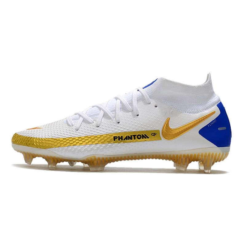 Nike Phantom GT Col Dynamic Fit enveloppant la cheville dans un tissu extensible et doux pour un maintien sûr, laçage excentré offrant une zone de frappe épurée.